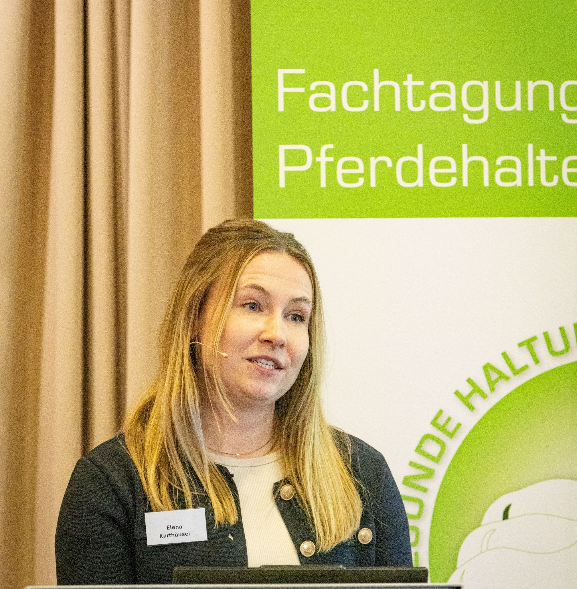 Im Anschluss stellte Dr. Christa Finkler-Schade, Agraringenieurin und Ernährungsberaterin, die entscheidende Rolle der Fütterung im Rahmen der Gesundheitsvorsorge heraus. Sie zeigte auf, wie über die Fütterung ein stabiles Mikrobiom hergestellt werden kann. Um damit das Immunsystem, die Hautfunktionen und die Lunge zu stärken und Erkrankungen vorbeugen können. Zudem betonte sie die wachsende Bedeutung fundierten Ernährungswissens, um Betrieben und Haltern Sicherheit im Fütterungsmanagement zu geben.