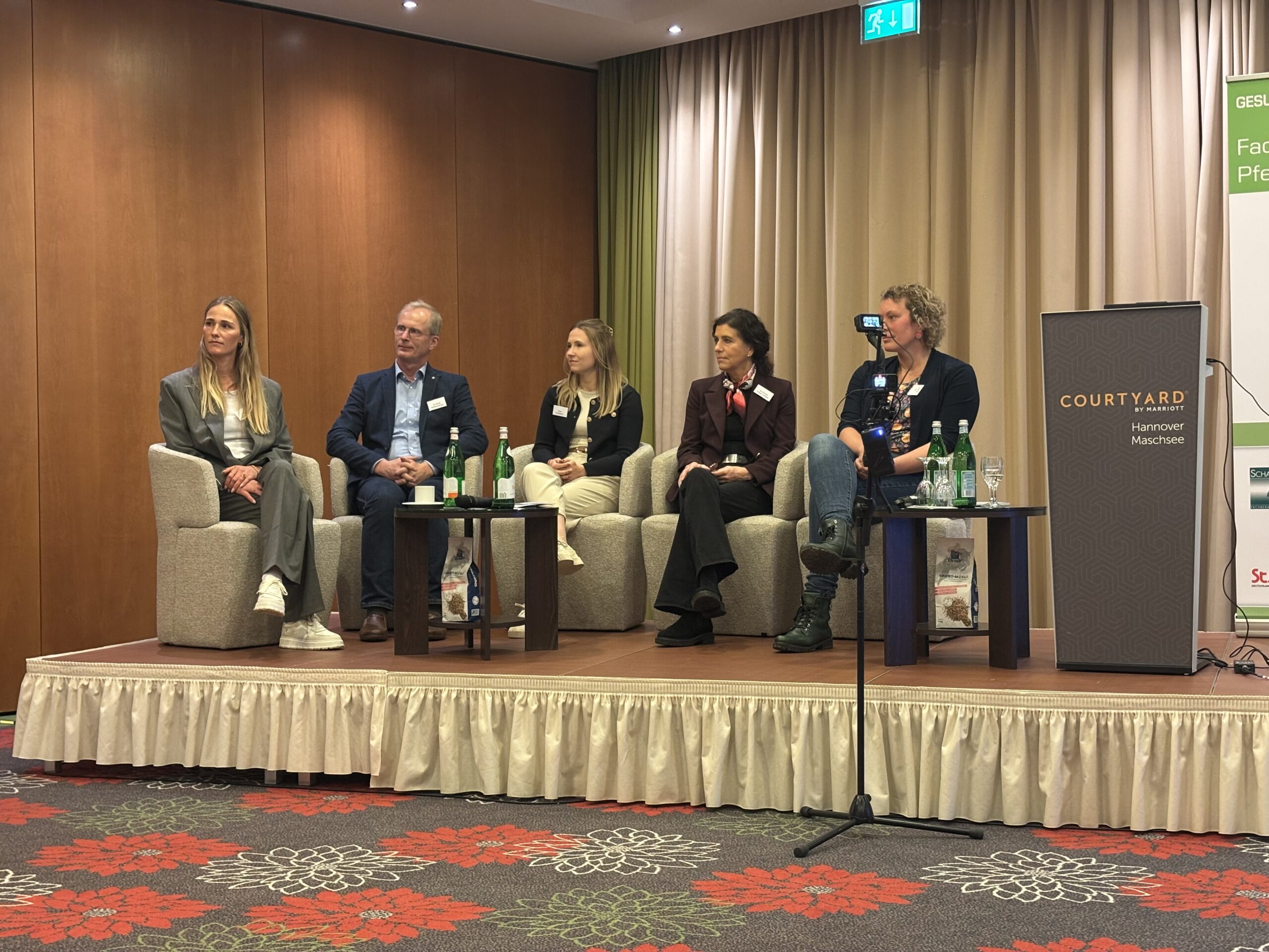 Bei der diesjährigen Fachtagung GESUNDE HALTUNG – GESUNDE PFERDE in Hannover standen diese Entwicklungen im Mittelpunkt. Expertinnen und Experten beleuchteten zentrale Aspekte der Gesundheitsprävention, darunter Ernährung, Zahnbehandlung und Bewegungsanalyse. In der abschließenden Diskussionsrunde diskutierten die Referentinnen und Referenten gemeinsam mit der internationalen Springreiterin Theresa Sutterlüty, die als Trainerin und Managerin ihre Pferde in allen Gesundheitsfragen bestmöglich unterstützt. Als roter Faden ging die Frage durch die Diskussion, wie Pferdebetriebe, Tierärzte und weitere Fachbereiche künftig noch wirkungsvoller zusammenarbeiten können.